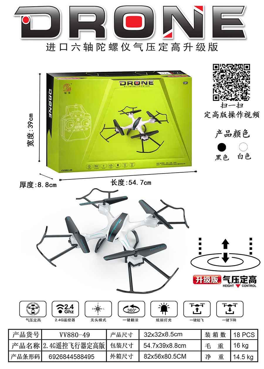 产品名称:气压定高四轴飞行器